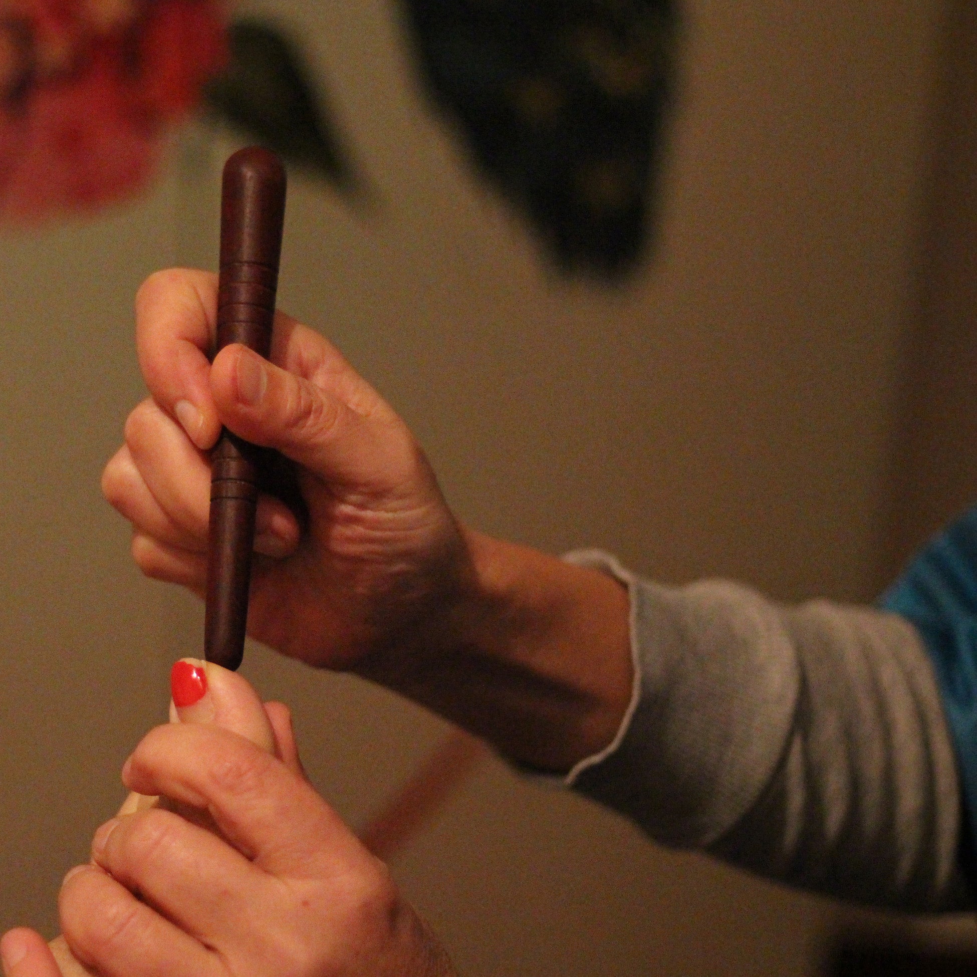 La réflexologie plantaire associe différentes techniques : un travail manuel avec les doigts, l’utilisation d’un stylet en bois, ainsi qu’une stimulation ciblée des zones réflexes.