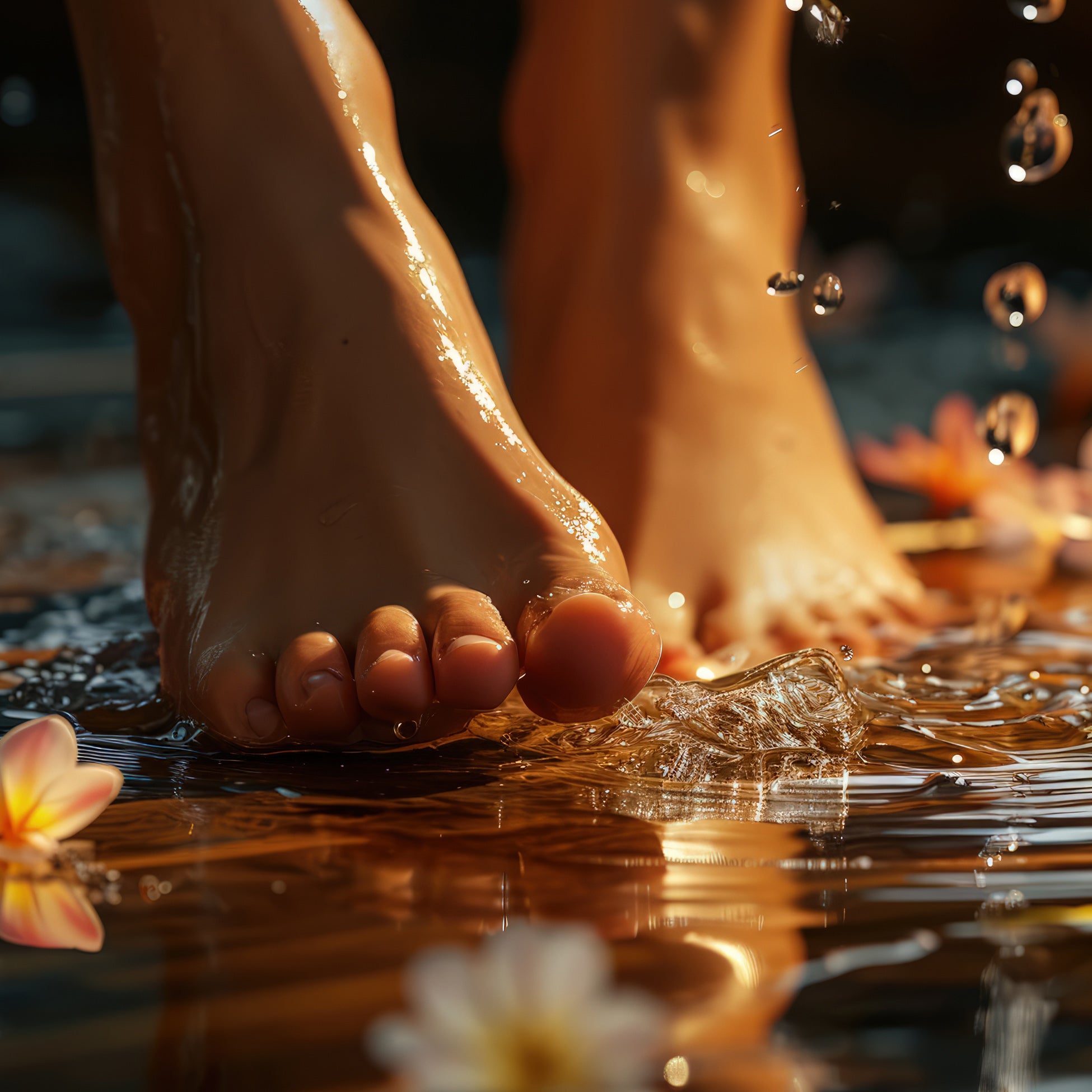 La réflexologie plantaire, aussi appelée foot thaï, se pratique des pieds jusqu’aux genoux à l’aide d’un mélange d’huiles, combinant pressions rythmées et gestes de drainage le long des méridiens énergétiques.